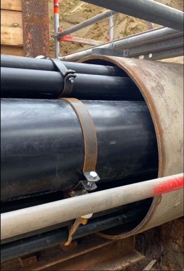 22131 N-Ergie Erneuerung 110kV Verpressung Deutsche Bahn 110kV Nürnberg Ausgangssituation zur FlüssigbodenverpressungLager der Leerrohre im SchutzrohrModellierung im Temperaturfeldmodell mit FlüssigbodenAbgeführte Wärmemenge des Temperatufeldmodells im FlüssigbodenRohrbündel für die Verpressung im SchutzrohrPlanungsmodellierung zur VerpressungAufbauen auf BaustelleVerfüllstopfen an Oberfläche zur Verpressung des Schutzrohres darunterVerfüllstopfen an Oberfläche zur Verpressung des Schutzrohres darunterAufsatz der Pumpe zur Verpressung mit FlüssigbodenVerpressung Südseite mit FlüssigbodenEntlüftungsrohr und Verpressöffnung Nordseite für FlüssigbodenAustritt Flüssigboden an EntlünftungsrohrAustritt Flüssigboden an EntlünftungsrohrFlüssigboden in Entlüftungsrohr zur Kontrolle der hohlraumfreien VerfüllungForschungsinstitut überwacht FLüssigbodeneinsatz